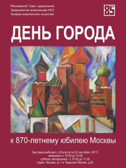20 августа – 22 сентября 2017 г. — участие в групповой выставке живописи «День города — 870» в Выставочном зале на 1-й Тверской-Ямской, 20