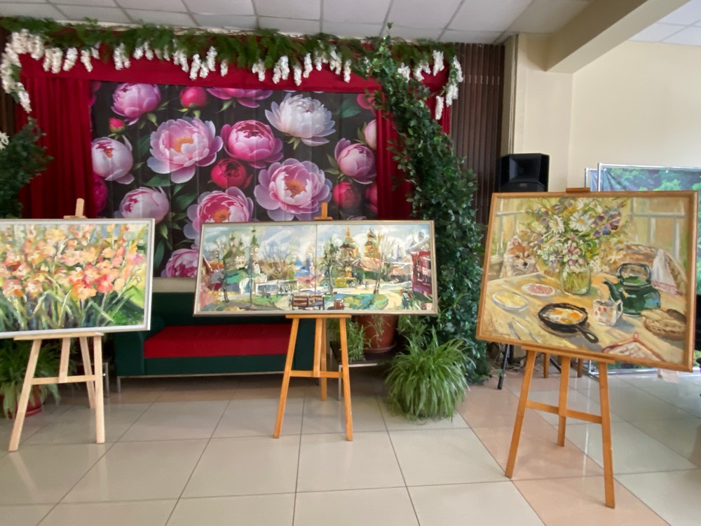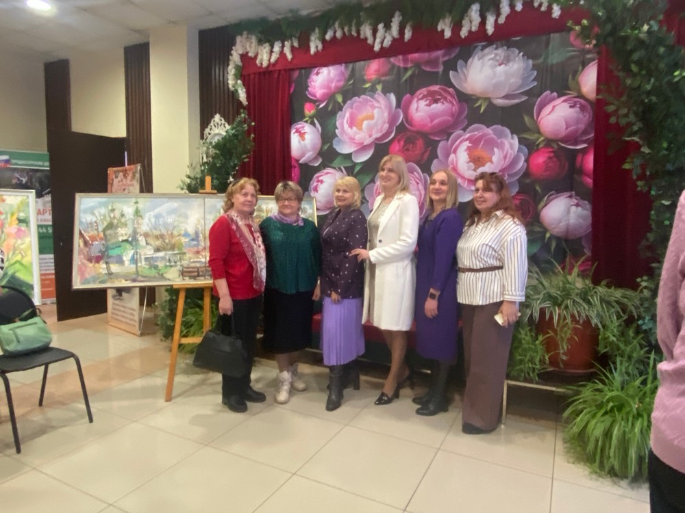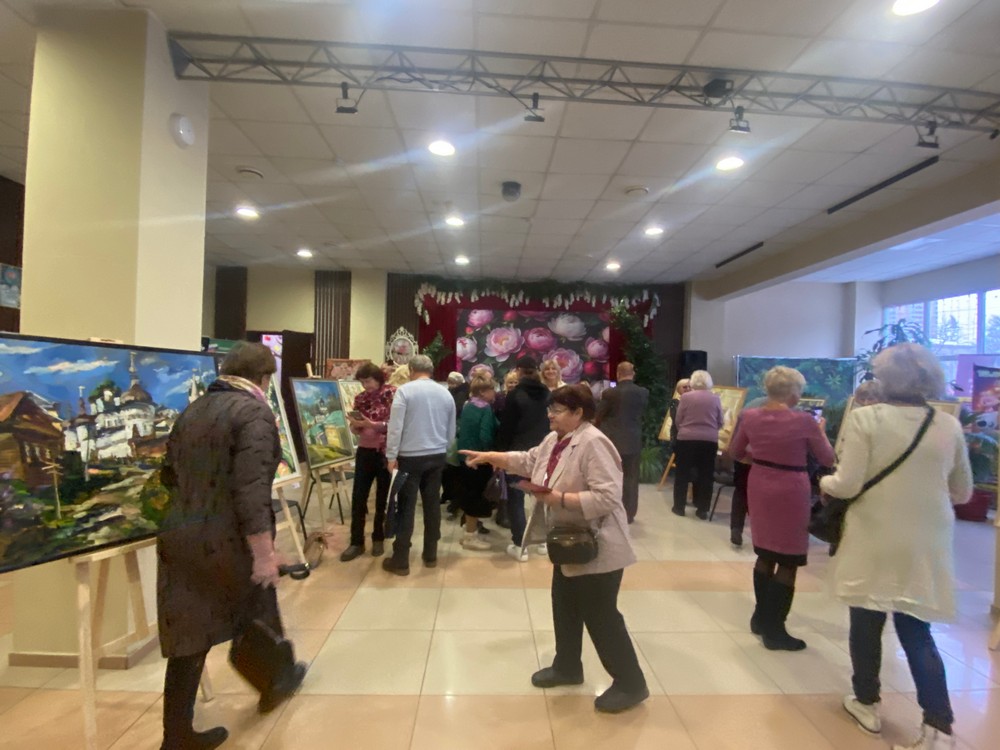 Как всегда нарядной и праздничной получилась персональная выставка, приуроченная к 8 Марта. Несмотря на то, что за окном еще сугробы и идет снежок, в холле Дворца культуры пахнет цветами, поздравлениями и живописными переливами. Все эти впечатления дополнили танцы детей и выступление музыкантов. Получилось очень душевно и по-домашнему тепло.