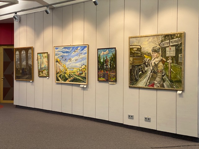 В Культурном центре «Зеленоград» открылась выставка, посвященная 80-летию Великой Победы – принимаю участие тремя живописными работами и стендом памяти о дедушке – Ветеране ВОВ, дошедшем в мотопехоте до Берлина.